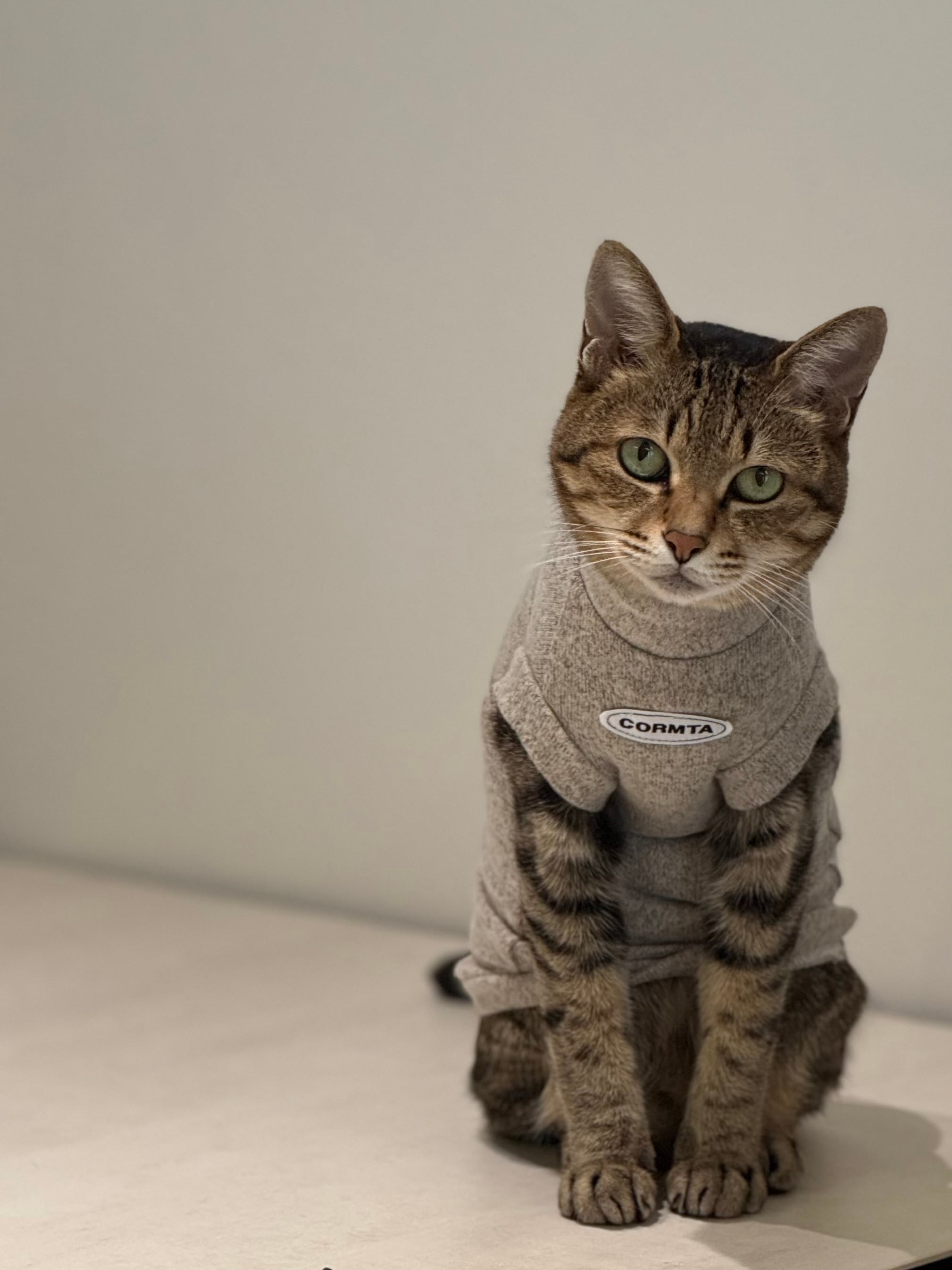 胸まわりはすっきり、お腹まわりはゆったりとした独自のシルエットで、長めの背中にもぴったりフィット。ハイネック仕様で抜けにくく、しっかりとした伸縮性があるため快適な着心地を実現しました。さらに、毛がつきにくい素材を採用しているので、お手入れも簡単。犬用の服では丈が合わないことが多いため、大切な猫ちゃんには猫ちゃん専用のウェアをおすすめします。