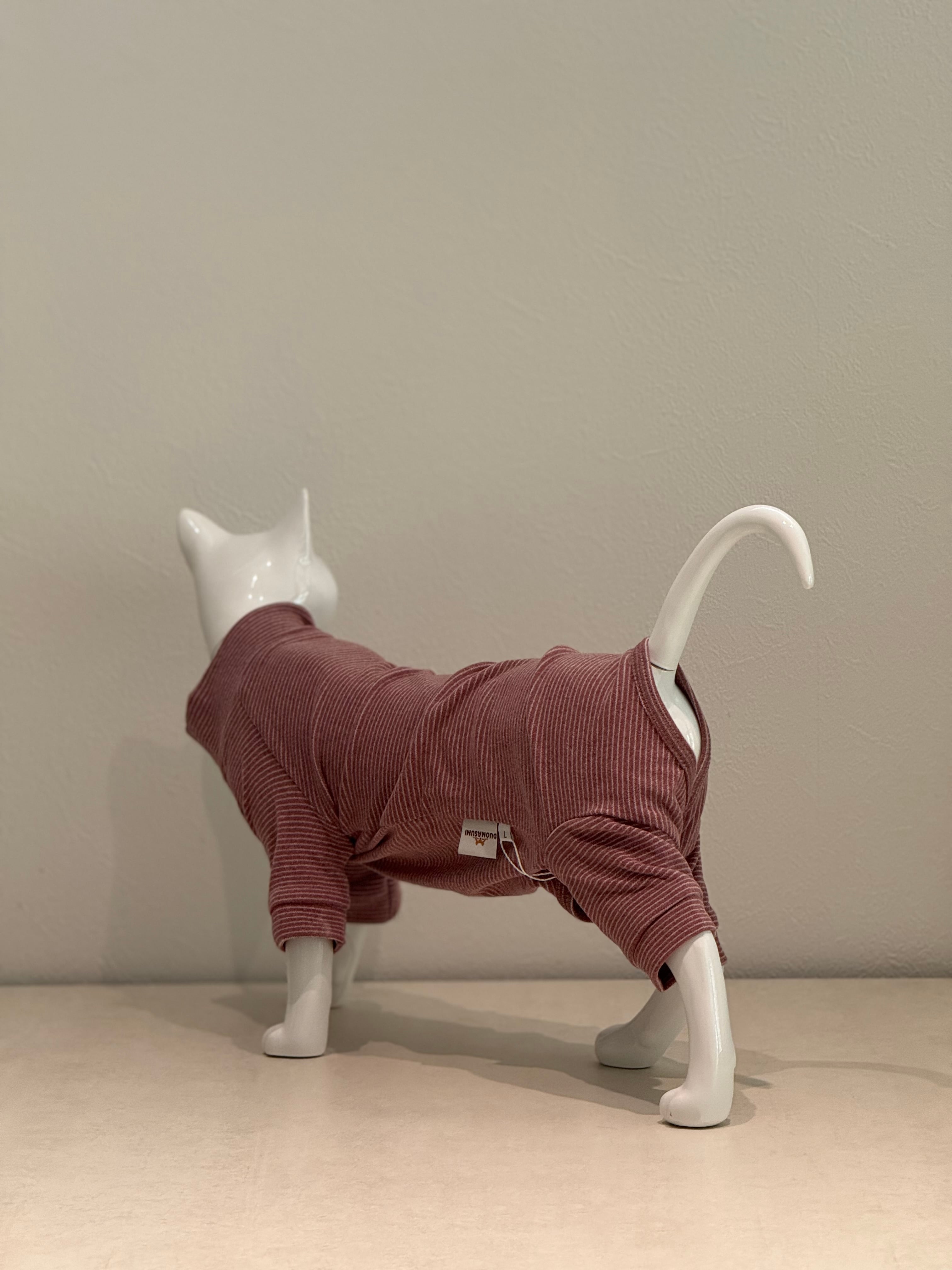 過剰グルーミングや術後ケア、脱毛部分の保護にもおすすめです。抜け毛の飛び散りを防ぎ、お部屋や車内も快適に。伸縮性のある暖かい生地がネコちゃんの体にやさしくフィットし、寒い季節も安心して過ごせます。
