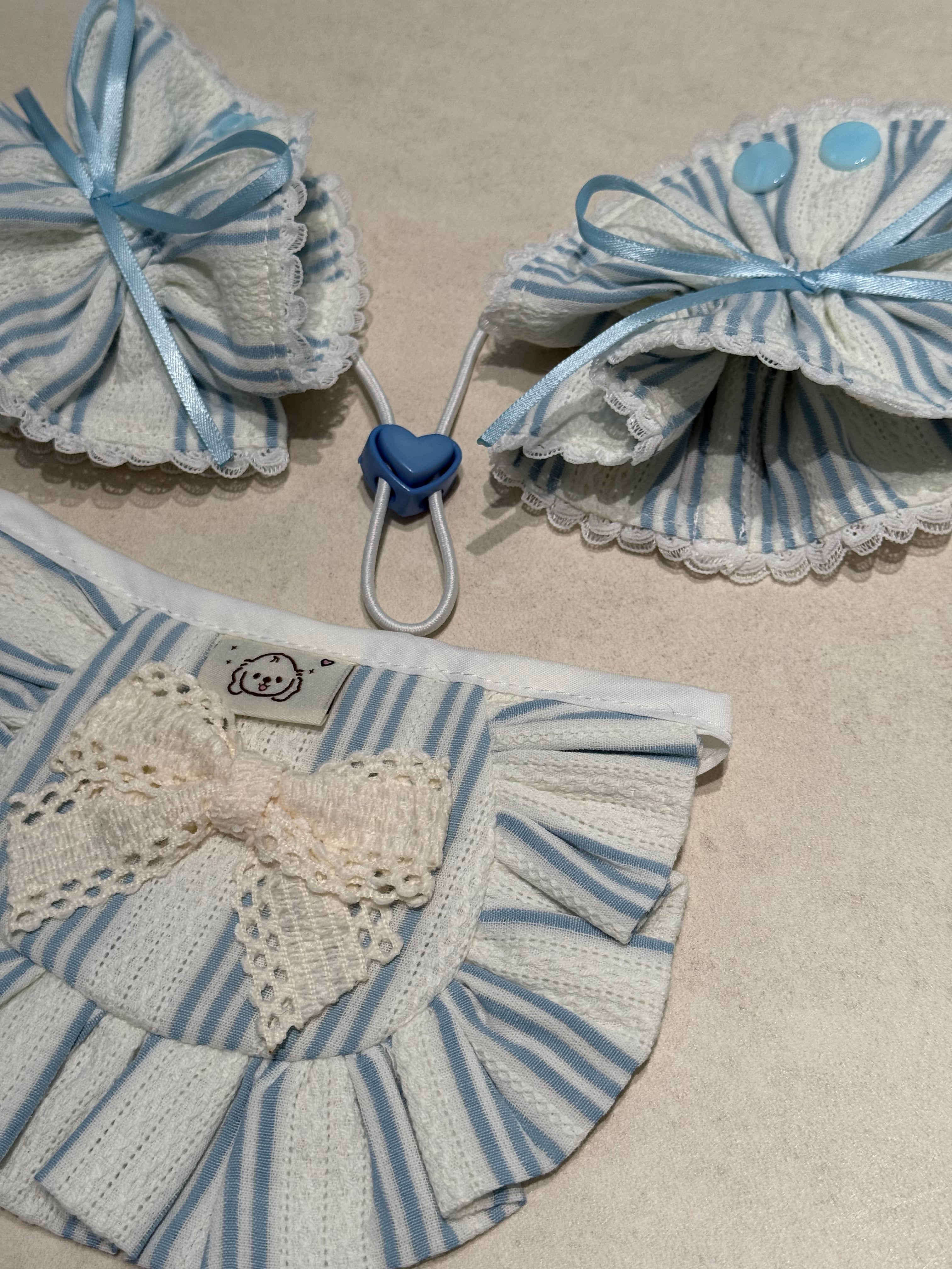 北欧テイストのレースリボンが可愛いフリルベビースタイ。