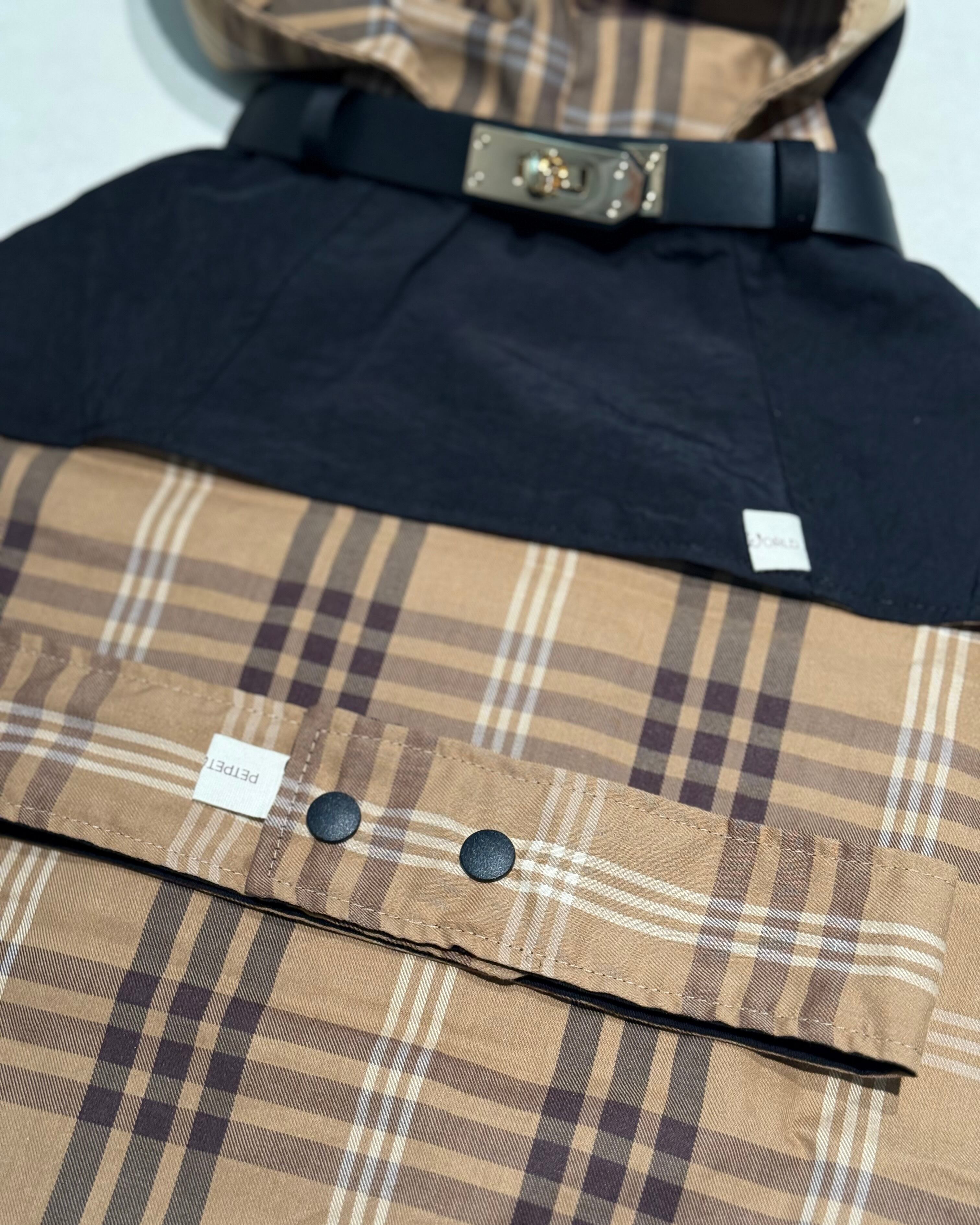 フードのシルエットもきれいで、上品なチェック柄が絶妙なバランス。