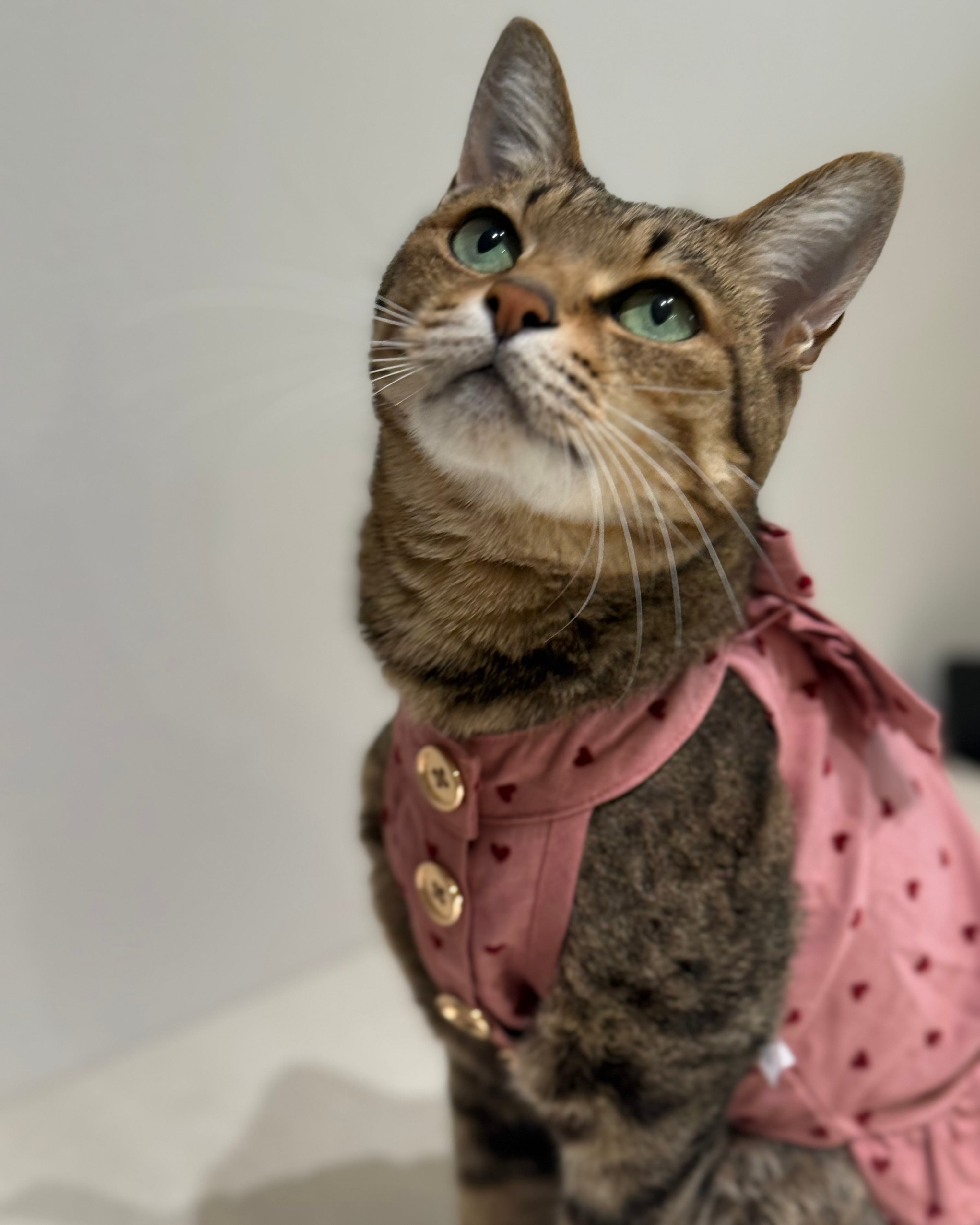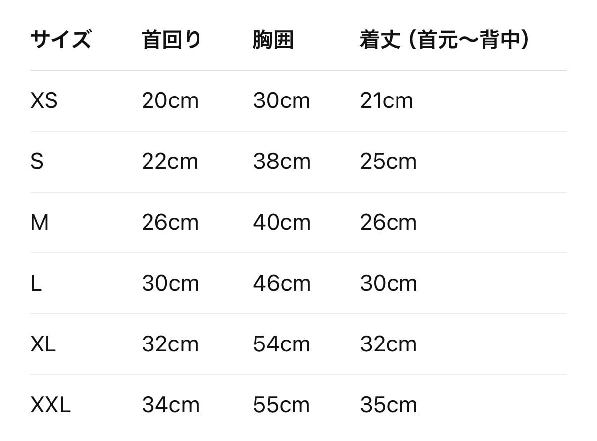 モデル猫(首回り 22 胸周り 37)はSサイズを着用しています。