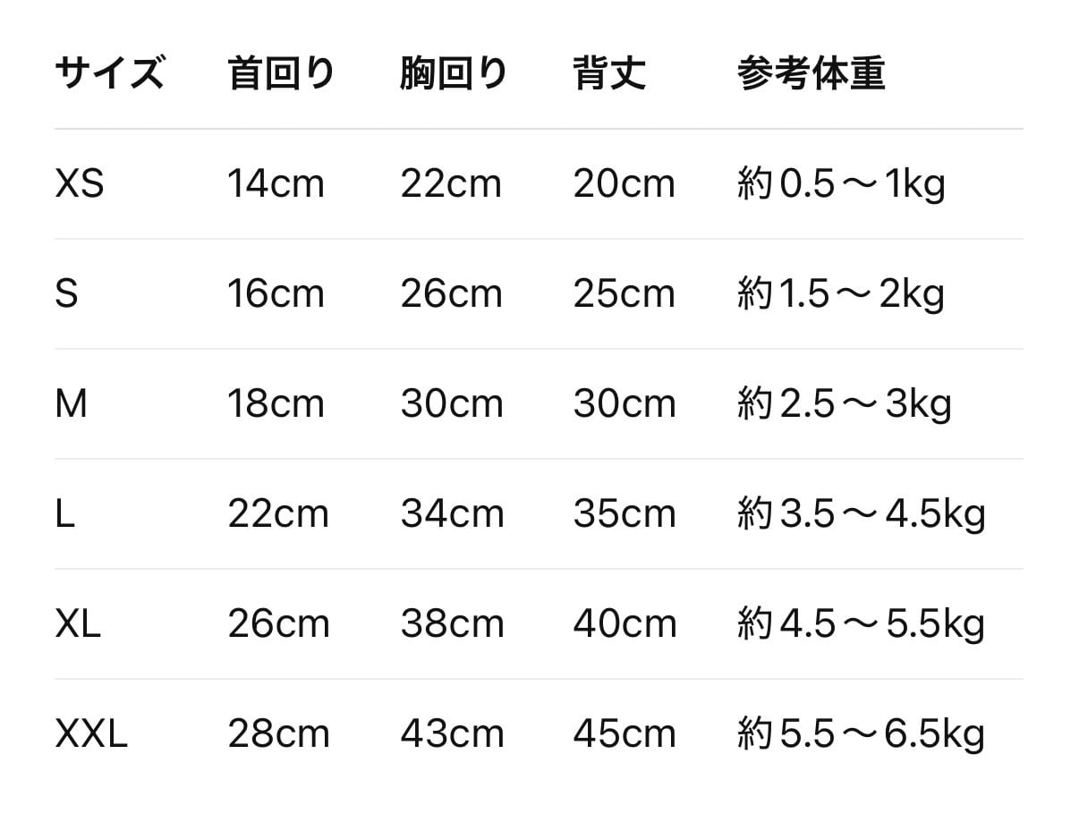 首回り23cm 胸回り36cm 背中 35cm