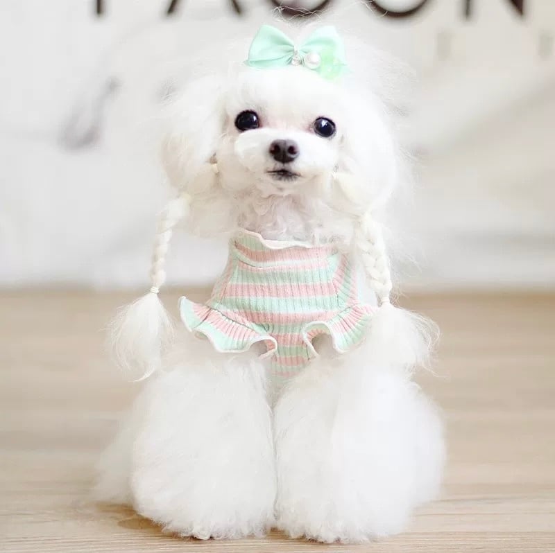 Dog/Cat ふりふりTシャツ ボーダー グリーン